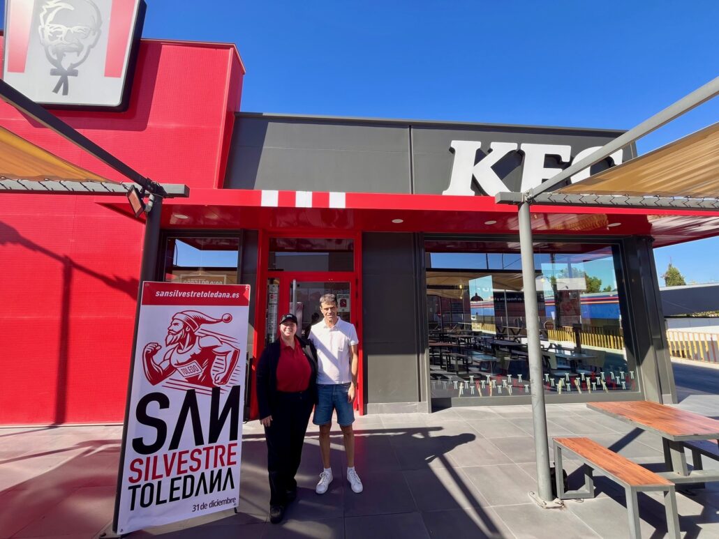 El acuerdo de patrocinio fue formalizado a principios de mes en las instalaciones del restaurante KFC Toledo. José Antonio Saldaña, en representación de la organización de la San Silvestre Toledana, y Elisabeth González, gerente del establecimiento, quienes celebraron esta colaboración que aportará un impulso importante a la organización de la carrera.